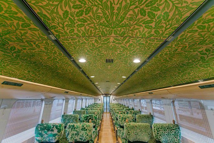 别具一格的车内设计也让人眼前一亮,木色为主的内饰配上艳丽的坐席,大部分座位都面向巨大的观景车窗,还有专门供孩子玩的迷你座位和婴儿篮,太贴心了!