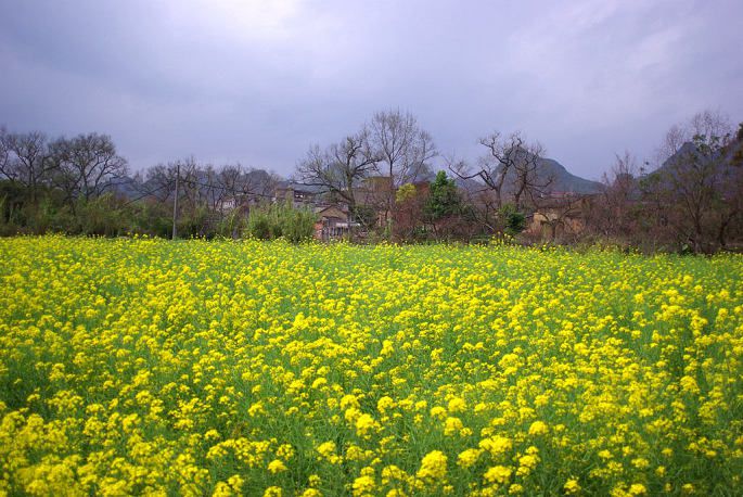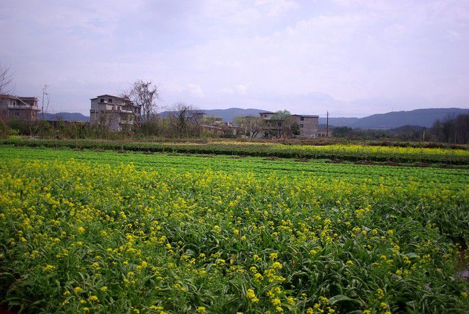 村边大块的油菜花已经开了,映衬着一幢幢后来才建起来的小楼,也有不错的体验。