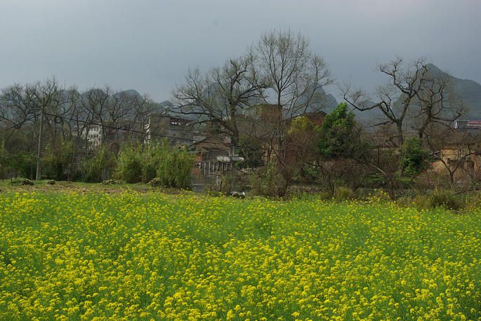 大圩,位于桂林的东南方向,车程很近,不久就到。穿过大圩,转去雄村,路况一般,路边景色还是可以的。