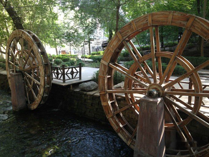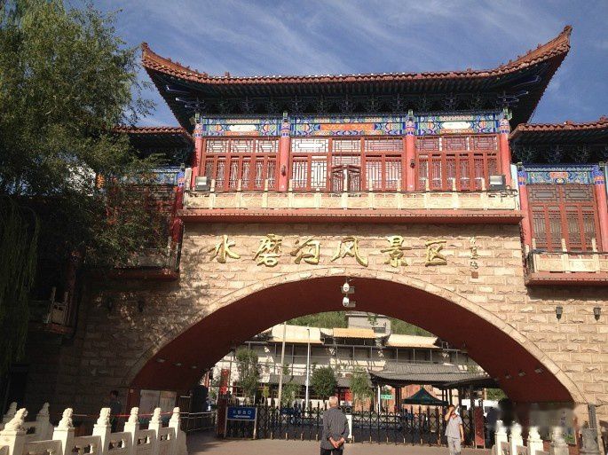 上午9点钟坐公交车去水磨沟公园,当地人拍婚纱照大都会选择这个在近郊的公园,大概1个小时的公交车车程吧。这座公园是清朝藩王在此造了石磨,然后利用流水推动石磨。入口处也有安保人员,随身携带的背包必须过安检机器,工作人员拿着金属探测仪检查行人的裤兜、口袋。公园里有武警巡逻,头戴头盔,手持盾牌。这里也有广场舞,但是大叔大妈们伴着新疆特色的民族音乐,跳着新疆舞,而且还有穿着维族服饰。公园内除了跳广场舞的,就没有多少游客了。公园内草木葱葱、环境优雅。
