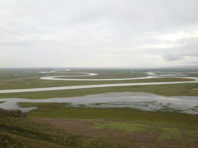 下午6点钟坐景区区间车去巴音布鲁克草原,下雨了,车内开了暖气,没有阳光,看不出景色。天鹅湖上只有3只天鹅,只是一个天鹅救助站。还有一个移动的庙宇,蒙古族信仰佛教,这与维族、哈萨克族信仰伊斯兰教不同,当时的一支蒙古族部落迁回中国时,也就是东归吧,庙宇用马车载回来,信仰佛教为团结振奋人心起了很大的作用。登上九曲十八弯观景台,可以看见河水蜿蜒曲折,这里是拍摄九个太阳的地方,因为没有日落,就没有美景了。