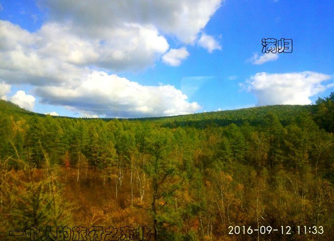 清晨06:12的火车到满归……昨晚九点多就躺床上睡了,凌晨5点就起床,洗漱完毕收拾行李退好房就直奔海拉尔火车站……还好安达青旅离火车站不是很远,但这个时候还没有公交,于是在路边拦了辆的士,10元钱,十几分钟左右就到了火车站。进入候车室,火车姗姗而来,是那种老式的绿皮火车,算起来这已经是我第二次坐这种绿皮火车了,上次是在嘉峪关坐到敦煌。不同的是这次的绿皮火车是有硬卧的,也不贵,硬卧才77元,硬座就只要35元。一如往昔,只要是不用在火车上过夜的,我首选硬座,虽然满归到漠河的四百多公里,大概需要十三个小时,但晚上7点之前就能到达漠河,于是我买的是硬座的票。