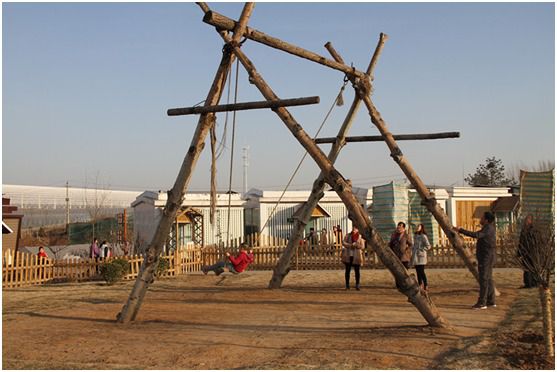 来到司徒小镇,先到农妈妈乐园,有个很大的秋千,有很多人在周围。