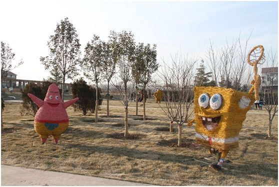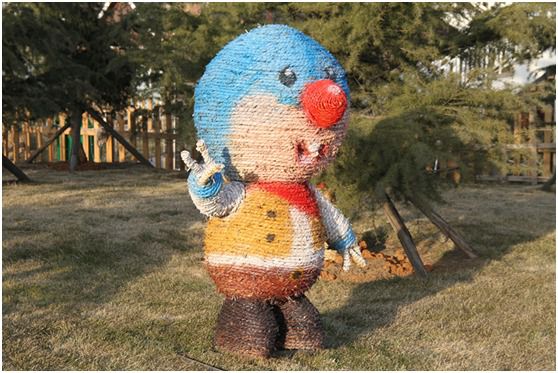 还有很多造型各异的稻草人,孩子们玩得很开心,很多人都在合照,很有乡村气息。