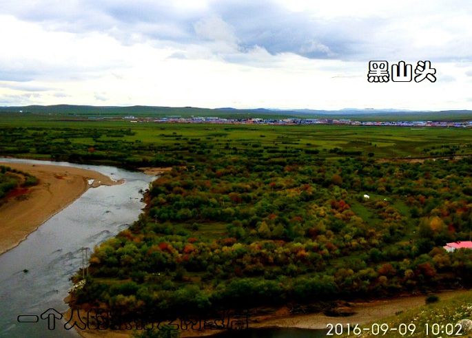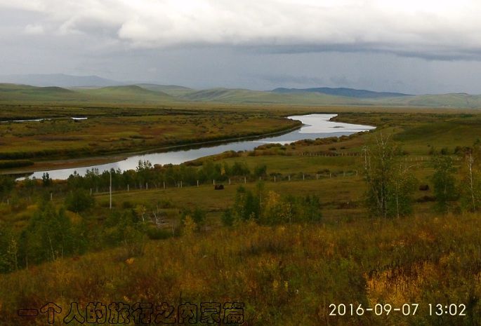 这条河叫额尔古纳河,对岸便是俄罗斯。当时亮哥开玩笑地问我们游泳怎么,不然我们游过对岸去,还免了护照签证呢!可惜我们几个都汉鸭子,而且,估计等我们还没上岸呢,对岸的暗哨不定从哪飞出一颗要命有东西来呢~