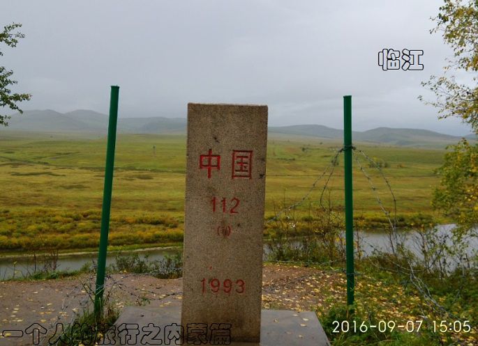 快到临江时,路过一个山头,风景很美,路边停了几辆车,亮哥也把车停在路边,让我们往山坡上走,说上面可以俯瞰对额尔古纳河风光,而且上面有一块国境界碑。