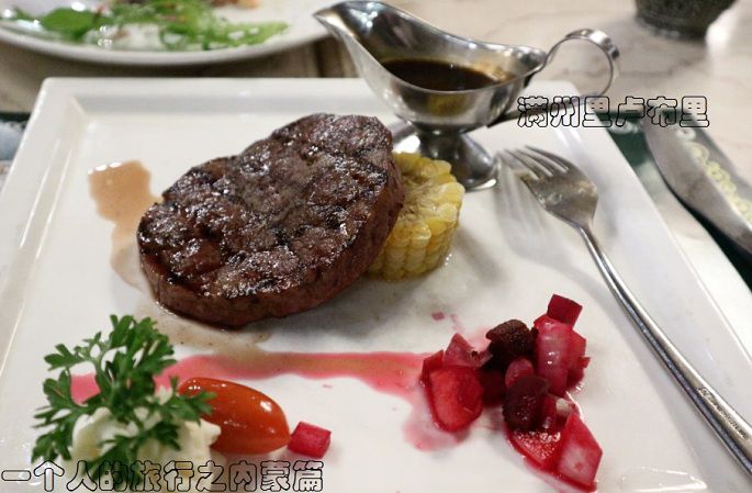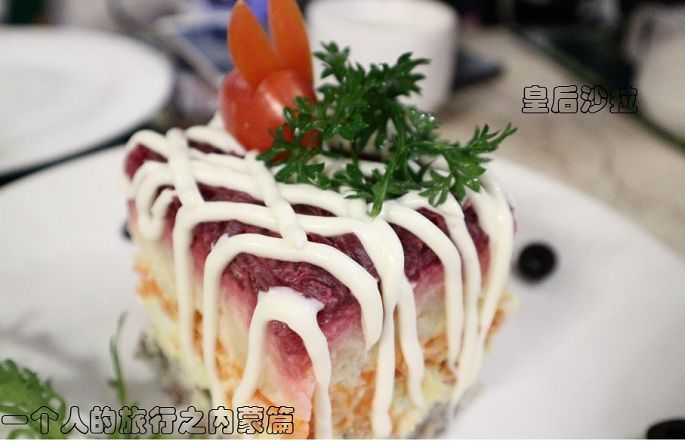 晚餐来到了卢布里西餐,里面的环境、装修都很有俄罗斯风格,就连服务生很多都是俄罗斯的帅哥美女,听说这里的厨师也是老板专门从俄罗斯请过来的,所以据说这里的味道很正宗。至于是不是,本人之前也没过吃俄式西餐, 所以没法对是否正宗作任何正面确认,不过,总体来说还是不错的.