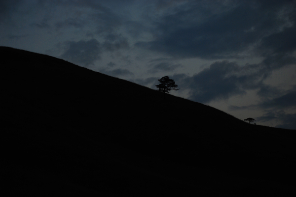远眺延绵的山,孤独的树