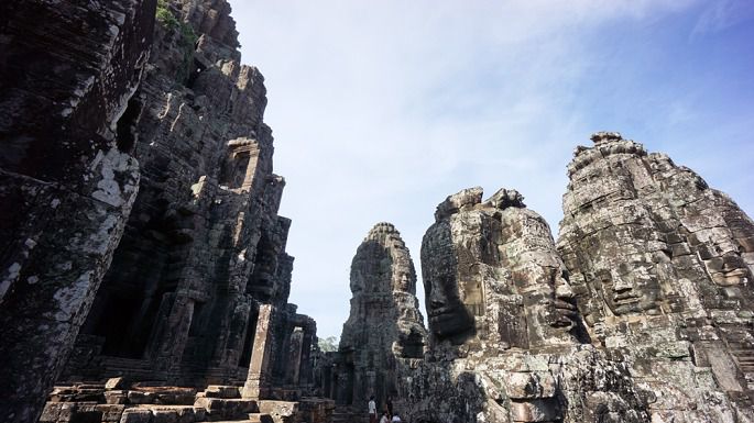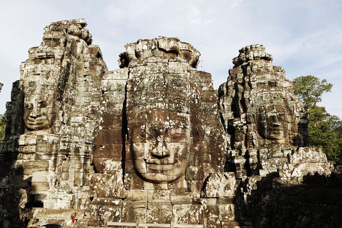 看完日出我们直接去大吴哥通王城(Angkor Thom),通王城呈正方形,城墙周长14公里,以宽达百米的护城河环绕。全城5道城门,南门和北门是百姓日常通行之门,东门为出丧使用,西门是犯罪者所走的。东门北侧还有一道胜利门,直通王宫,是国王专用。