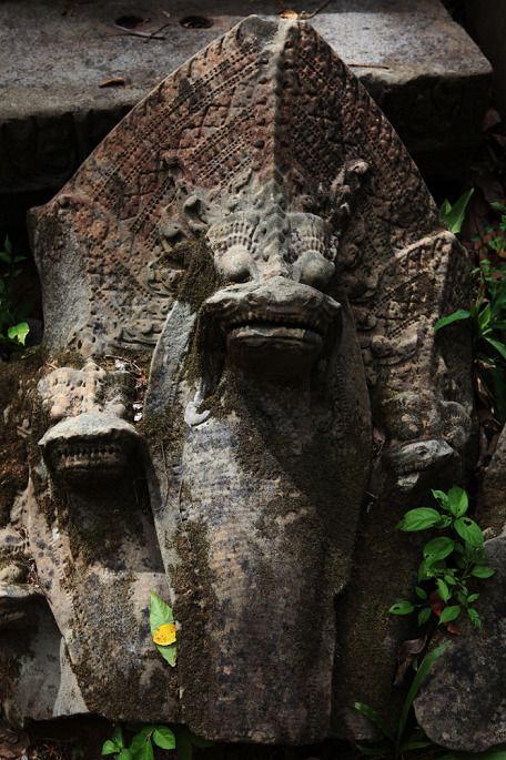 说到“那伽”Naga,是在吴哥窟景区里到处都能看到一种建筑造型,在梵文中,那伽的意思是“蛇”。在整个东南亚,那伽是富饶和保护神的象征,而高棉文化中的表现就更是突出。蛇因其弯弯的、长长的身体和两栖的特性而成为水和地之间的纽带,是这个建立在稻米种植基础上富庶社会的保佑神。在东南亚一些国家的神话中,那伽的形象是一根绳子。在世界之始,神与魔鬼都用绳子搅动宇宙之洋,以求长生不老药。