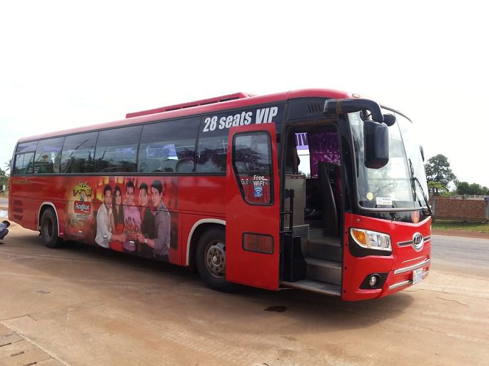 我们到了大巴公司的上车地点时发现了问题,肯定不是我们要求的巴士,车上没厕所,全车加上我们6人才8个乘客,和车上的售票员一沟通我们明白我们被倒卖了,也只能是这样了,旅游淡季就没什么游客坐巴士,大的巴士公司不愿意为这几个人开一辆直达的车,把我们倒到小公司的车上就算完事儿,幸亏一路上上车的人不多,只停了几次后面就直接到开金边了。暹粒到金边在修路,路况不算好灰尘也很大,但是一路能看见柬埔寨的一些风土人情也挺好的,车开了一会儿WIFI 就坏了,把我们气的一通嚷嚷,服务员是个小男孩怯生生的说他也没办法,吴总和不落只好亲自动手修理,居然给修好了。其实车上没什么人挺好的,座位随便坐,我们每个人都躺在那儿,用微信聊着天就到了。