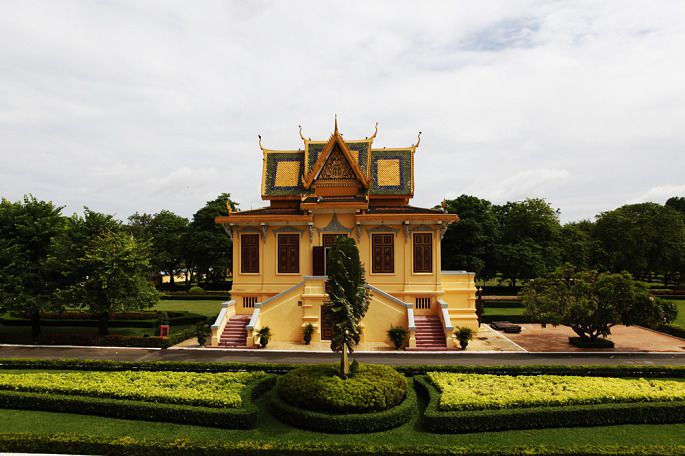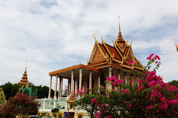 早上起床就发现在下雨,而且越来越大,我们办了退房手续,把行李寄存好后去逛金边皇宫,在看过吴哥窟之后对现代的皇宫好像没什么兴趣了,不过,来都来了还是要看一下金碧辉煌的皇宫的,主要是看金银阁寺,那里有纯银的地砖和镶嵌着钻石的玉佛。