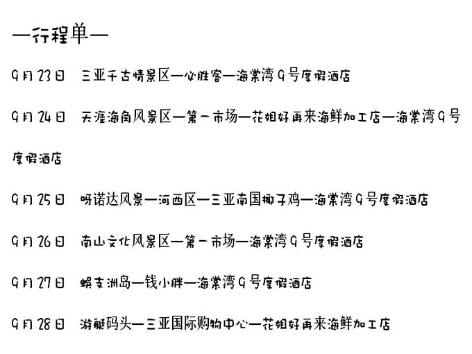 今日行程:海棠湾9号度假酒店—呀诺达雨林文化旅游区—海棠湾9号度假酒店—河西路—南国椰子鸡—海棠湾9号度假酒店