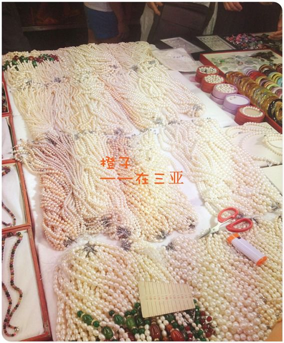 太阳升起来的时候我们来到了三亚的国际购物中心,很热闹,虽然是大白天,人还是很多,情不自禁的留住了我们的脚步,有很多名贵的玉石、珍珠、黄梨木之类的古玩,也有很多价格便宜的小玩意,整整一条街