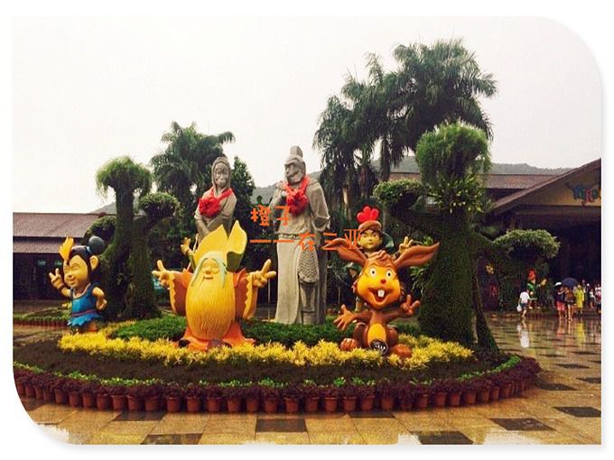 到达呀诺达,门口的卡通人物很有意思,一片被绿意包裹的景区