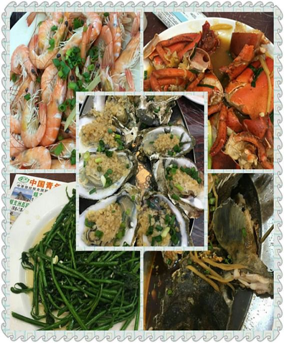 这次买的海鲜是上次没吃过的,白灼基围虾很甜,清甜的基围虾,生蚝被蒜蓉覆盖了,连着蒜蓉吃肉,很满足的口感,辣炒大龙虾很好吃,满满一盘子龙虾肉,看起来不好看,吃起来好吃,肉很多,所以觉得很好吃,石斑鱼清蒸的做法,一点姜丝一点葱花,肉质很嫩,沾上汤汁有味道,还有个空心菜,蔬菜该有的清淡,荤素搭配,整顿饭吃的很好,满意