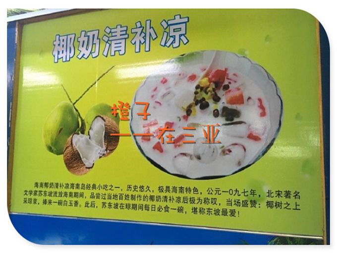 半路想吃甜点,于是到了河西区,看到有个小店,既然来了三亚就与“椰”离不开关系了,点的一个冰镇椰子奶冻,一个杂果清补凉,一个椰奶清补凉,每份椰奶清补凉是会多送一壶椰奶的,这个很不错,味道很可以,在大热天的来一份这样的甜点盛宴,很赏心悦目,喜欢杂果清补凉里面的水果很好吃,很新鲜,但是有个缺点是店里不够凉快,人一多的话感觉有点小热,椰子奶冻也很好吃哦,可以去试一试的