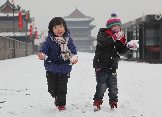 好不容易走到了中国雪乡,大伙开始打雪仗了,艾琪快要被雪藏了~