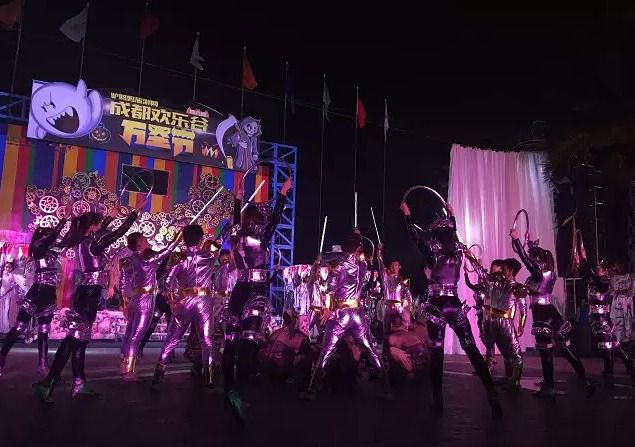 除了鬼怪寻园,还有精彩的鬼诞表演,对抗魔王部落之战全都在舞台上呈现出来。看得大家热血沸腾。好像一场摇滚盛宴,我们在台下拉手欢呼,和台上的演员们一起欢呼尖叫。