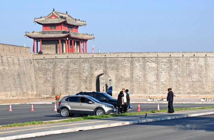 西门及城墙,城墙及城(内)边的道路都经过了整修,整洁、畅通,而西门城外要杂乱许多