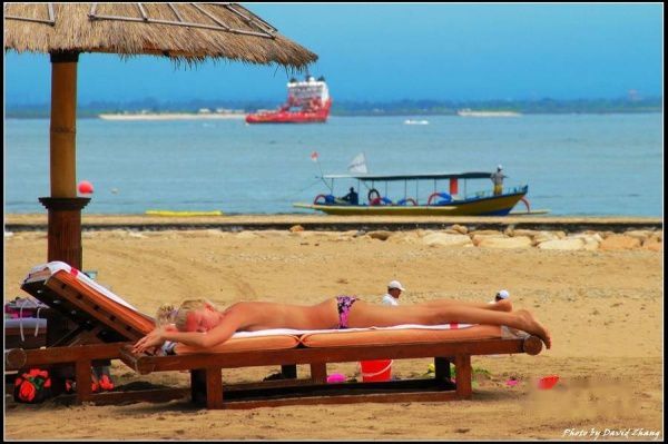 睡个懒觉8点多起床。牛奶面包荷包蛋,巴厘岛的甜点和风味小吃。一顿丰盛的早餐之后,涂上防晒霜,拎上一杯冰水,沿海滩向北,往南湾溜达。南湾Tanjung Benoa位于努沙杜瓦以北,半岛向北突出的尖端,是水上活动的主要区域,距我们酒店仅1km多。在这里可以参加拖曳伞、水上摩托车、香蕉船等活动,还可以乘船出海,潜水观赏海景。 南湾对岸的海龟岛上有许多海龟、蜥蜴、蝙蝠、巨蟒,游客可以拍照留念。