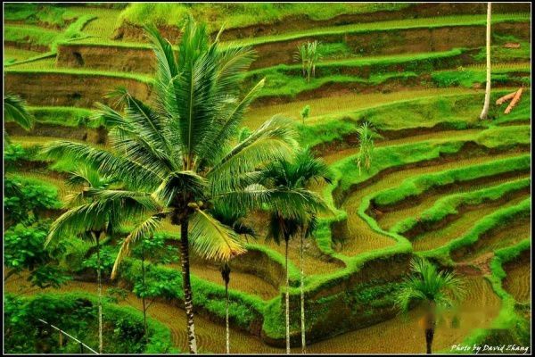巴厘岛著名的梯田风光主要集中在德格拉朗一带,在这里你会发现很多明信片和摄影作品上熟悉的场景,田间点缀的椰树和雄伟的火山背景使它和世界上无数的梯田中独树一帜,难得的是热带风光与田园景色的完美契合。