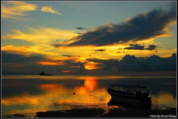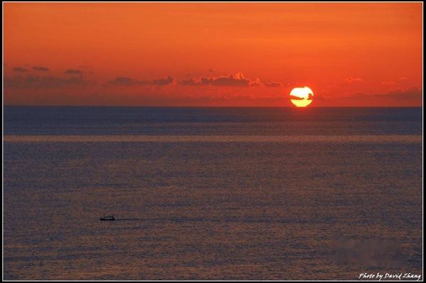 努萨都瓦海岸朝东,是看日出的好地方。虽然有云,太阳没从海平面出来,但还是很美,绚丽的早霞,平静的海面,远处轮船上的灯火,岸边停泊的小船,还有天空中的一弯残月…。