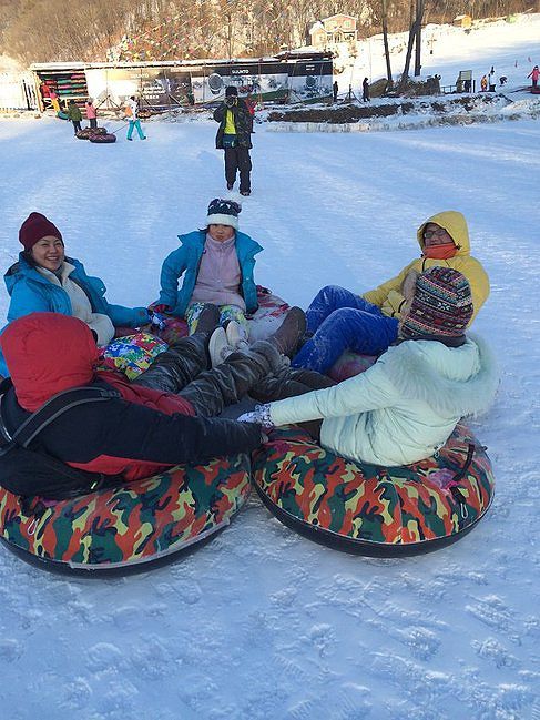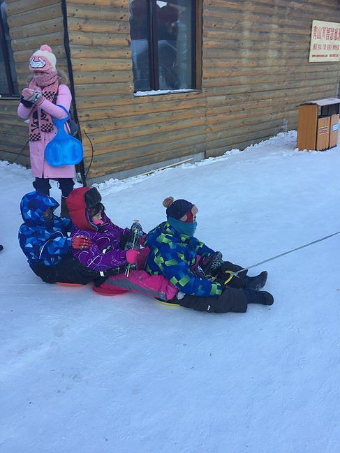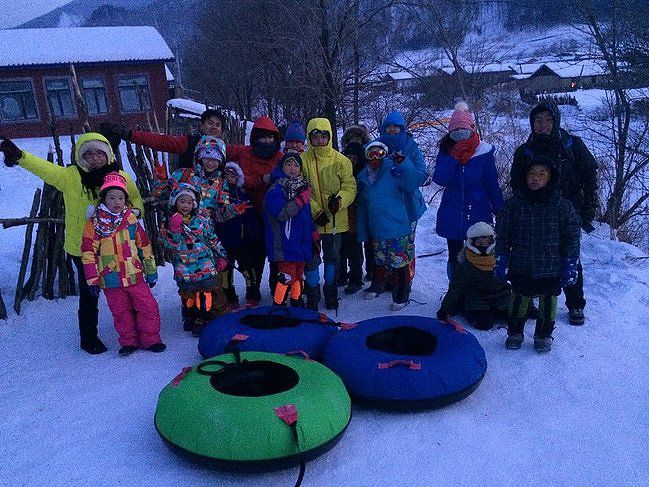 晚上到达东升入住的是独立卫浴农家,放下行李领队豆丁就带孩子们去滑雪圈了,雪地过山车又叫,而且大人也可以玩本身就喜欢刺激决定跟孩子一起,这个地方到处都是雪,随随便便就可以堆个雪人,随随便便就可以来一场打雪仗,我们体验了一次雪地拔河比赛,人生第一次我们摔倒后都成了一个球啦,获胜队伍有神秘礼品哦,孩子嬉闹过后晚饭吃的异常的香甜,都是老板娘自己做的,虽然这个地方物资比较匮乏但是味道还真不错,吃过饭领队带着孩子做灯笼,等下篝火晚会的时候用,篝火晚会印象深刻,因为零下20多度的天气篝火晚会相信你不愿意跳舞的人也不得不跳一下了。