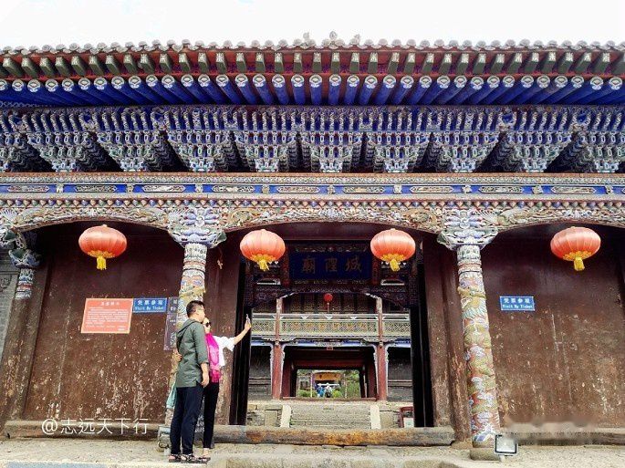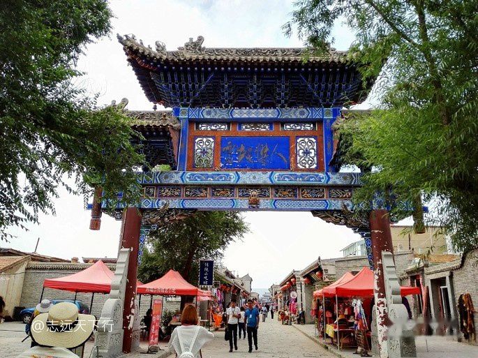 进入丹葛尔古城,就可以看到整条老街了。明清老街作为湟源老城的重要组成部分和湟源民俗集聚的明清老街,连接着城隍庙、关帝牌坊、文庙、丹葛尔厅署等古建筑群,记载着古代西北地区最大贸易市场的发展,老街使用青砖、灰瓦、白墙、朱红柱廊等,采用明清典型的七彩遍装法彩绘,民居采用灰、白、朱红三色饰面,使建筑布局与老城建筑格局相吻合。