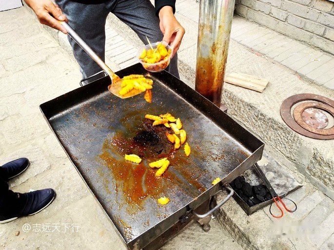 12、老街上的小吃--煎土豆,古城中还有许多传统小吃如:酿皮、酒糟、酸奶。