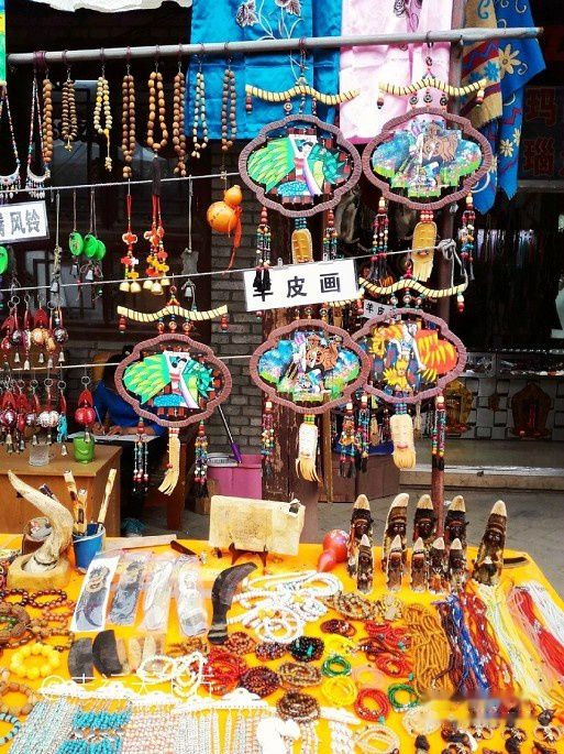 13、老街上有各式各样的民族工艺品,羊皮画是出现频率较多的一种。