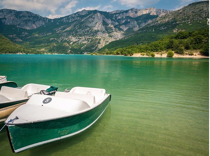 在酒店吃完早餐后,奔赴圣十字湖。一九七四年建成的圣十字拦河大坝,把韦尔东河水阻隔在山谷之中,形成了法国第二大水库,取名圣十字湖。整个湖面大约二十二平方公里,湖水最深处九十米。