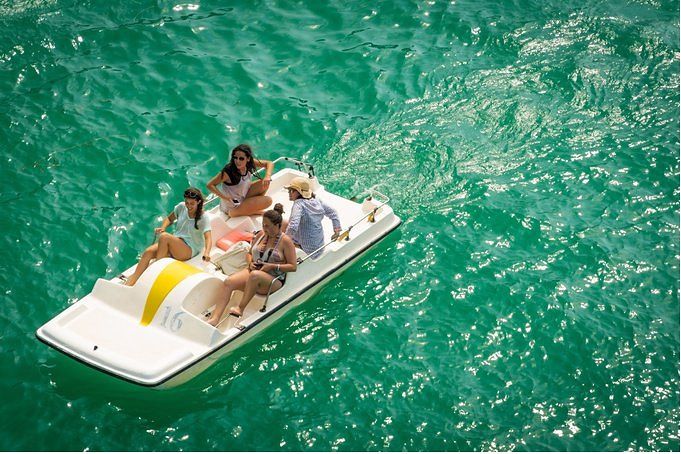 一定要在天气很好的时候去呦~不然天气不好的时候,或者风很大的时候,船会关闭的,就会很遗憾的。我们当天就是正赶上天气风太大没所以没划上~~呜呜~