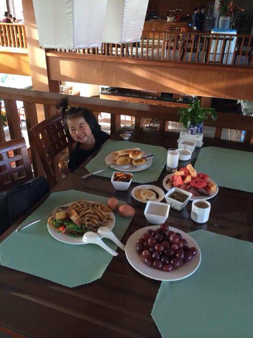 今天睡了大懒觉,11点才起床,我们赶不上早餐,于是早中合并,