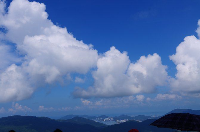 缆车, 好像是30/人, 不是天太热,我会选择到处走走停停拍拍。而导游用喇叭提示游客,全程9公里顿时吓坏了不少人,赶紧买票上车。 结果,... 直奔海上观音不过500米余,好吧。