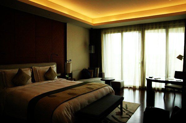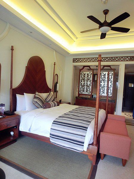 酒店的大堂设计的非常高,一进去就有种豁然开朗的感觉,安静人也不多,据说这是海南第一家以西班牙风格为主题的酒店,听说设计团队也是来自迪拜帆船酒店的原班人马,房间真的非常大,如果要私密感也可以把阳台上的帘子拉下来就不会有尴尬的感觉了!