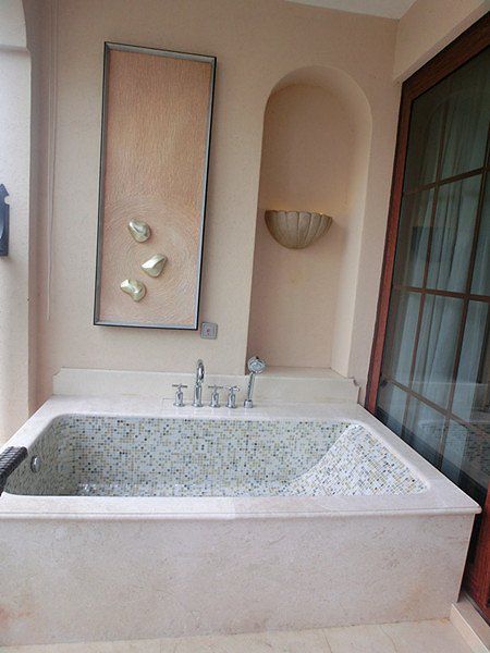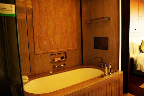 进入到房间,房间很大,很舒适,温泉浴缸。酒店的硬件还是挺不错的,花园、绿植、草坪,游泳池水系掩映在酒店绿化中,池水清澈,远处便是沙滩和大海。