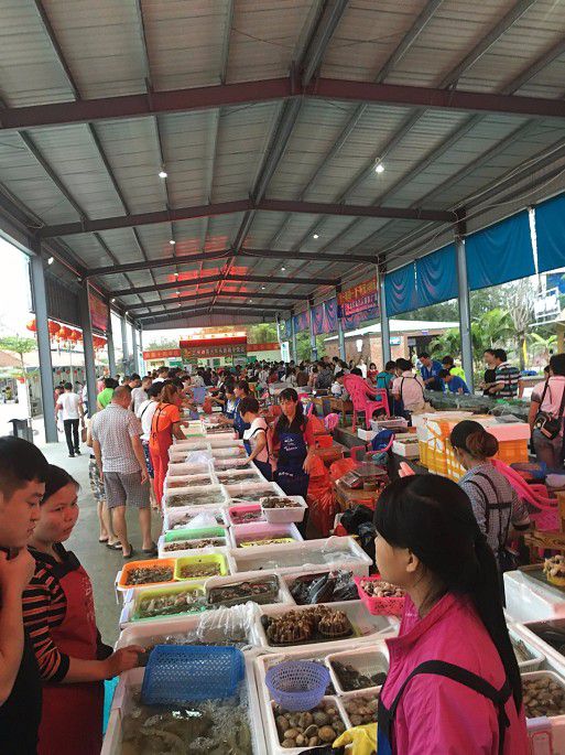 海鲜集散地,各种各样的海鲜品种,早已经在网上做好了功课,火车头万人海鲜广场环境好、加工店多。海鲜品种齐全、新鲜,足斤足两,加工费便宜,海鲜价格也实惠,各种高中低端的海鲜都能在这里买到。海鲜卖场紧挨着加工店,营业时间和加工店同步,基本都是从早上9:30——24:00才关门。在加工店和卖场中间有一横排的特色小吃店,主要卖:椰子饭、竹筒饭、清补凉等。