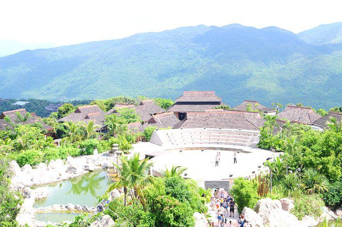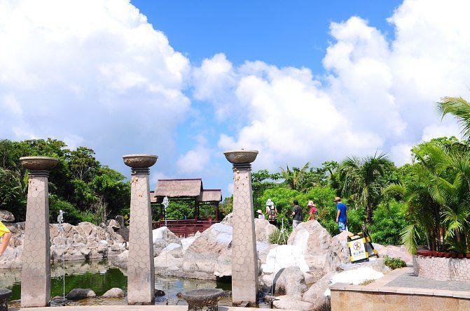 这里没有什么热带的感觉,(天真的热没错。。。)观光车是票价一起的,坐上去很刺激。这地方被非2一炮打红。 如果你是非诚勿扰的影迷,你一定要来,这里处处是电影中场景。 如果你只是纯粹的想欣赏一下热带风景,那么就不用来这里了,毕竟这里人文景观多过自然景观了。 值得一提的是,从这里的观景台上远眺,可以看见美丽的亚龙湾全景,真的很漂亮。
