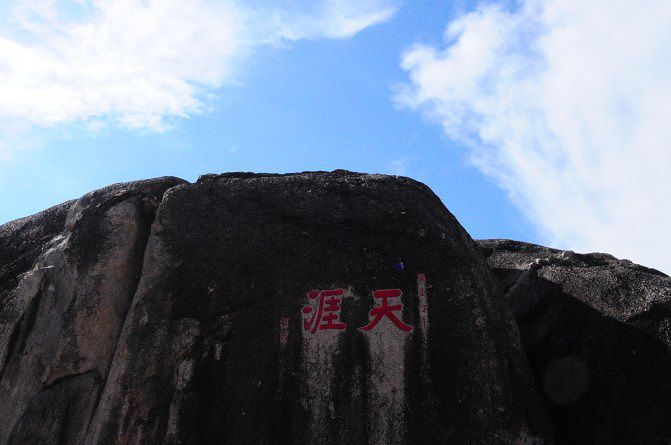 天涯海角游览区,位于三亚市区西南23公里处,陆地面积10.4平方公里,海域面积6平方公里,背对马岭山,面向茫茫大海,是海南建省20年第一旅游名胜。这里海水澄碧, 烟波浩瀚,帆影点点,椰林婆娑,奇石林立水天一色。海湾沙滩上大小百块石耸立,“天涯石”、“海角石”、“日月石”和“南天一柱”突兀其间,昂首天外,峥嵘壮观。