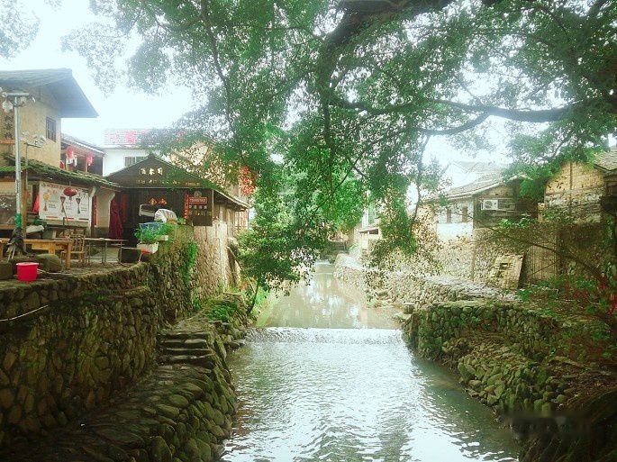 客栈就在云水谣景区的一端。云水谣景区有三个景点,都在两三公里内,相对比较集中,可以走路。景区不大,我们就从客栈出发,用了一个下午游览了所有景点。景区内,空气很好,到处都是树,温度适合,一直听到潺潺的流水声,路边还经常出现跳动的小青蛙。惹得小朋友好激动。