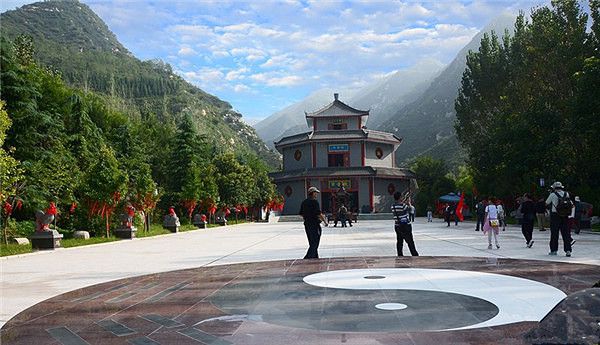 首先映入眼帘的是一个寺庙,紫云观,灰白墙砖砌成,寺庙与山峰巧妙结合,巧夺天工。