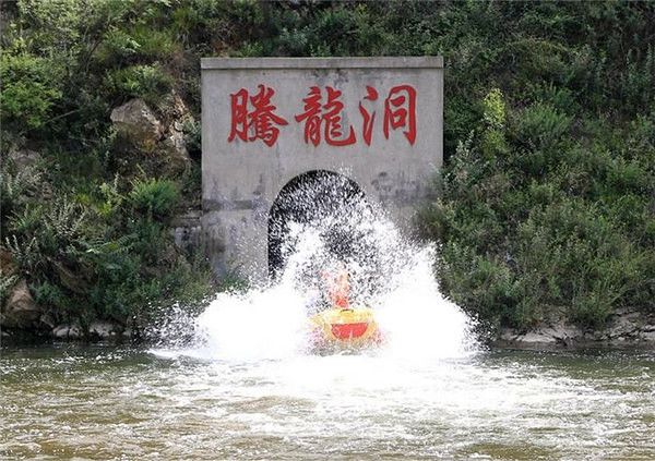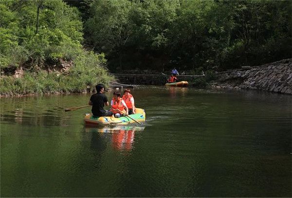 继续前行,听到欢呼声,只见游客坐在橡皮艇上顺滑道而下。顿时明白,水上娱乐项目,漂流。
