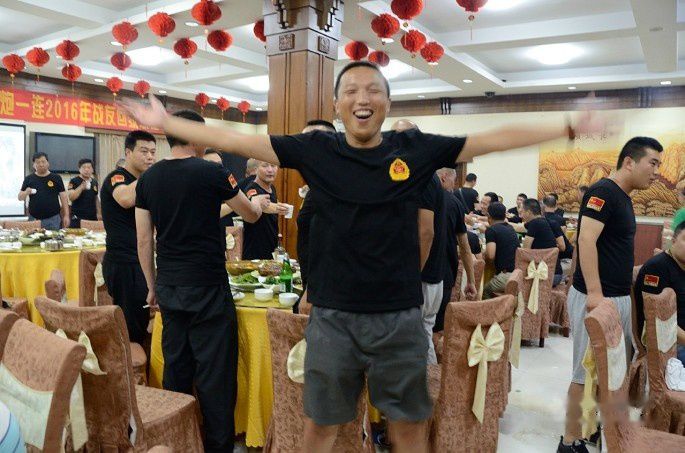 席间,意犹未尽,蒋班长即兴指挥96年度兵高唱军歌。