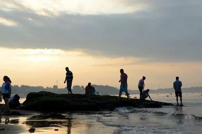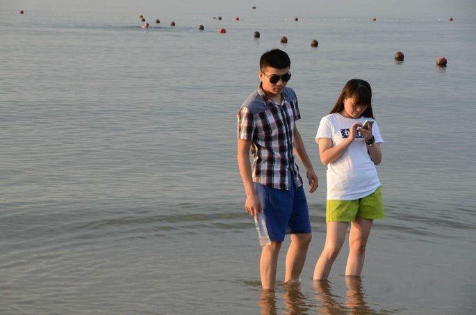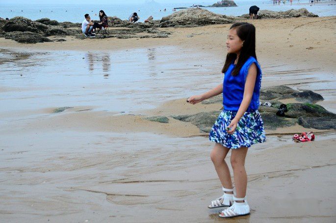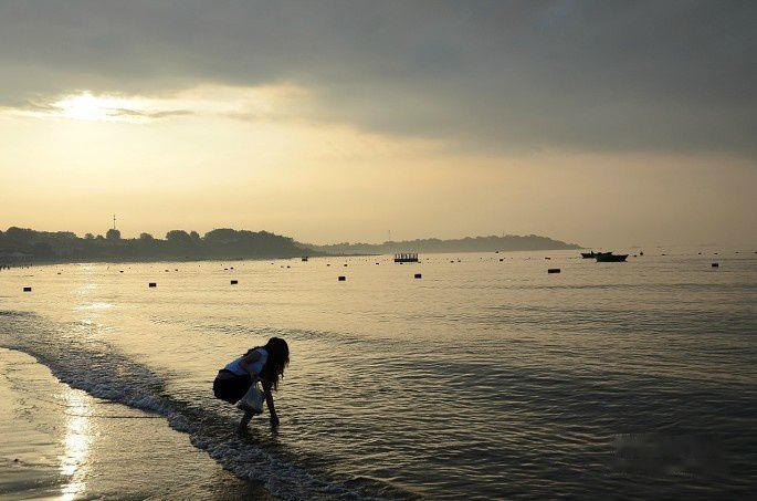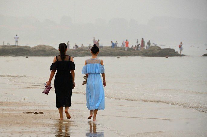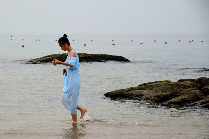 海水漫过沙滩,踏浪而行,凉爽惬意!
