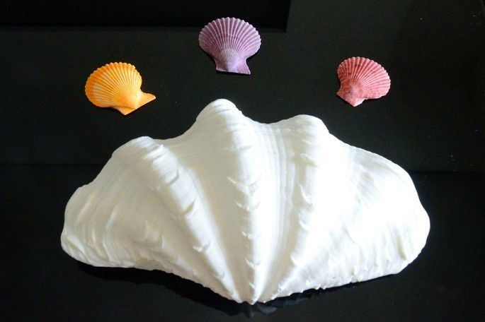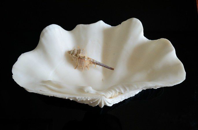 海边渔民家购买的贝壳,小的2毛一个,大的20元一个。