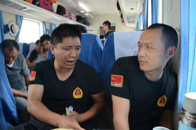 西安上车的渭南老兵,专程带着小儿子去廊坊参加战友聚会活动。老班长是位地道的西北汉子,特实诚,家里承包一养猪场,这几天刚好是母猪繁殖期,妻子忙不过来,要求他放弃这次聚会,大哥说了:“不行,我想念多年未见面的老战友,就是离婚咱也得去!”当兵人的情结,唯有当过兵的人才能理解,也更有认同感。