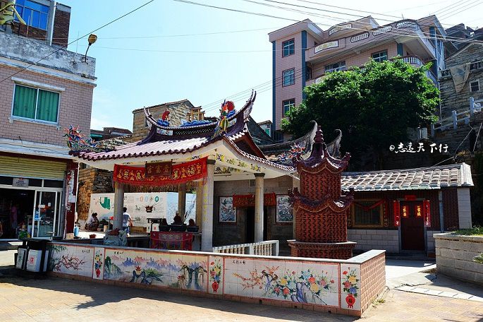 图6,弃船登岛,首先来到的是一座很小,却很有闽南建筑风格的庙宇——晋富宫。惠屿人多为肖姓后人,晋富宫供奉的是肖厝人祖先肖太傅公(官至太傅,故称),左右敬奉的是张巡、许远金身(肖氏先人因其在“安史之乱”中坚贞不屈,誓死保国的英雄气概而敬之,以为子孙之楷模,与先祖供于一处膜拜)。晋富宫始建于清后期,文革受毁,后重修。据考证,因惠屿人靠“乞海”为生,晋富宫始建初期便有村民供奉湄洲妈祖,并得予僻佑,极为灵验。