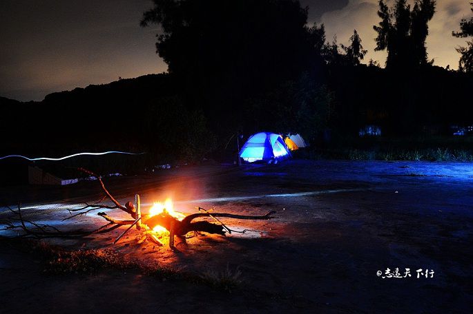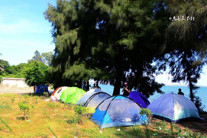 在惠屿岛上想要露营,首选的露营地自然是惠屿小学的操场上,而且这里还有一片防护林可以为大家遮阳挡雨,实在是再合适不过了。想要游泳,从帐篷里钻出来,前面就是“半月湾”沙滩;想要篝火游戏,有现成水泥地面的操场,可避免火灾的发生(但篝火之后,记得把碳渣清理掉);想要做饭洗澡,学校里的餐厅就有自来水(不过要付淋浴用水费给老板)。