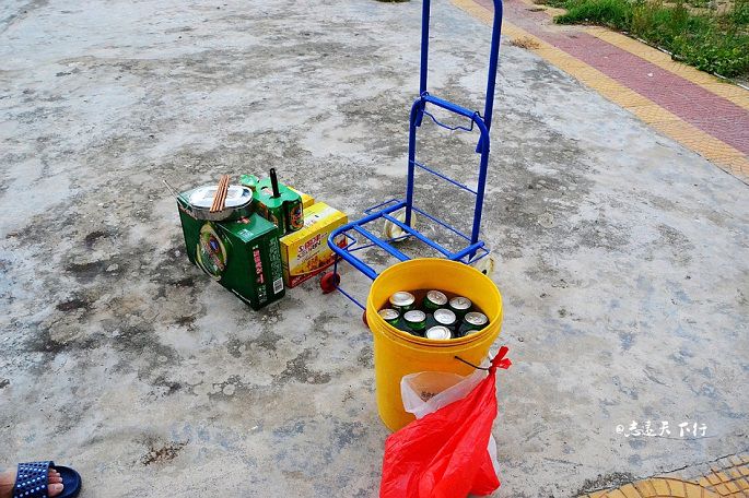 我们来到惠屿岛露营时,岛上目前是有几家小卖部,但却没有一家餐厅可提供就餐的,这与惠屿岛日益火红的旅游业完全不相匹配啊,我们不禁为吃什么而苦恼。第一天晚上我们有准备自助火锅,但第二天中午却是没有安排,原本想,如果岛上没有吃的,就回到渔排上再吃一餐的。
